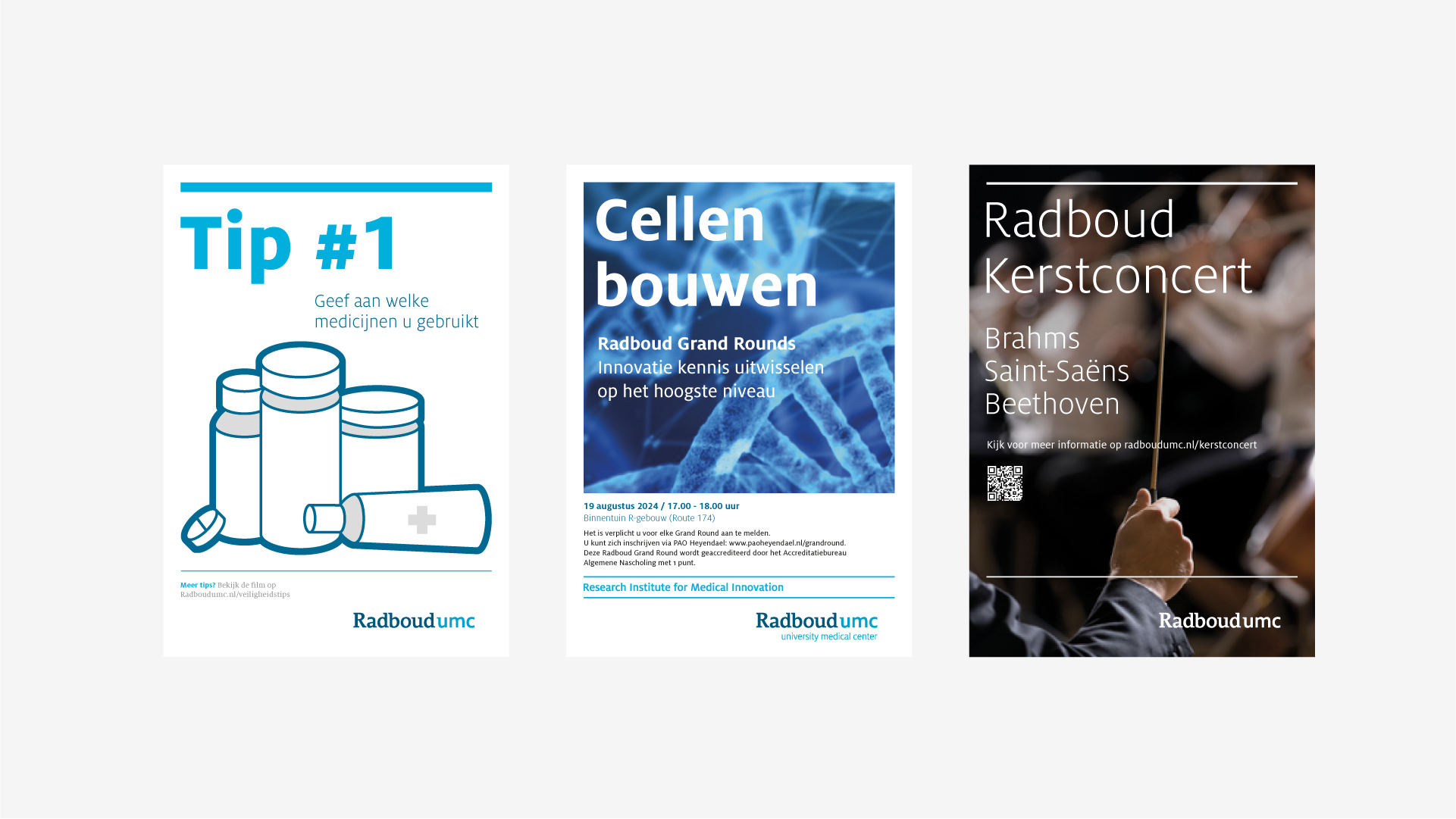 Het resultaat is een toekomstbestendig merk dat de nieuwe organisatiestructuur naadloos ondersteunt. Het Radboudumc positioneert zich hiermee helder en eenduidig, met een identiteit die ruimte biedt voor eigenheid en garant staat voor blijvende herkenbaarheid in een veranderend zorglandschap.